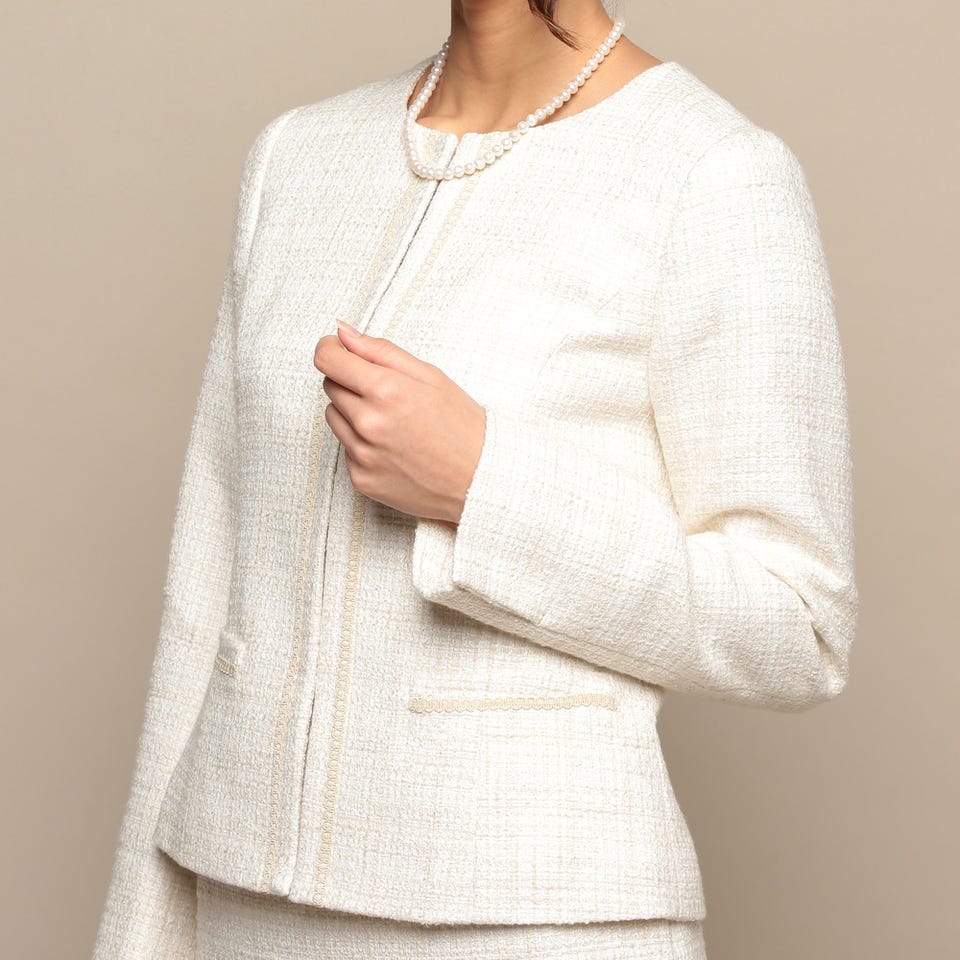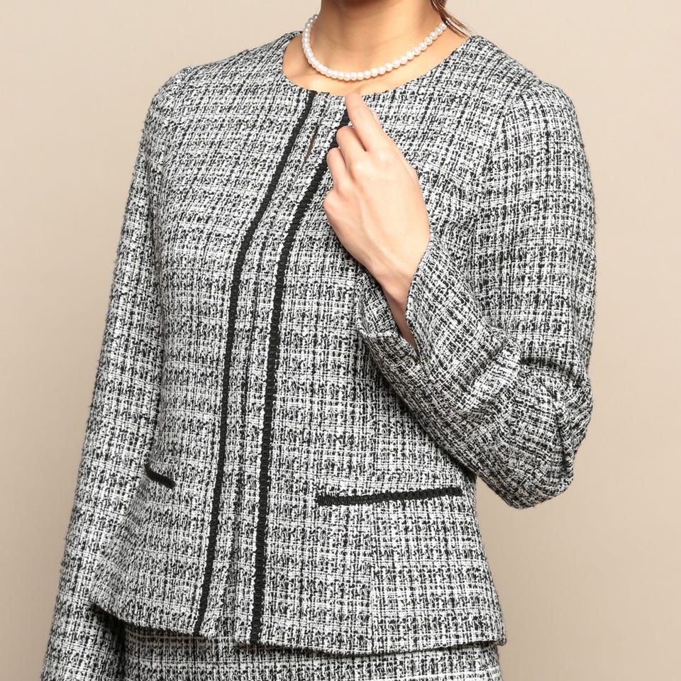 ■ジャケット表地:レーヨン45% / コットン22% / ポリエステル20% / アクリル13%テープ部分:ポリエステル100%裏地:ポリエステル100%■スカート表地:レーヨン45% / コットン22% / ポリエステル20% / アクリル13%裏地:ポリエステル100%