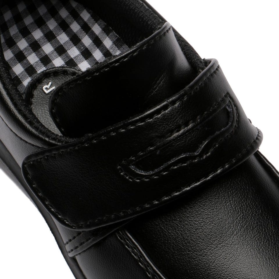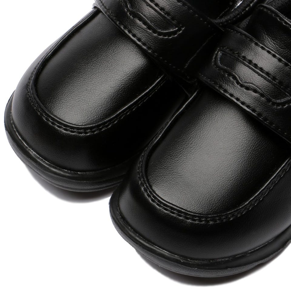 マジックテープ式の脱ぎ履きが簡単にできるシューズです。コインローファー風のクラシックなデザインをイメージしました。厚手のソールを採用した快適な履き心地。フォーマルなスタイルにしっくりと 馴染む1足です。