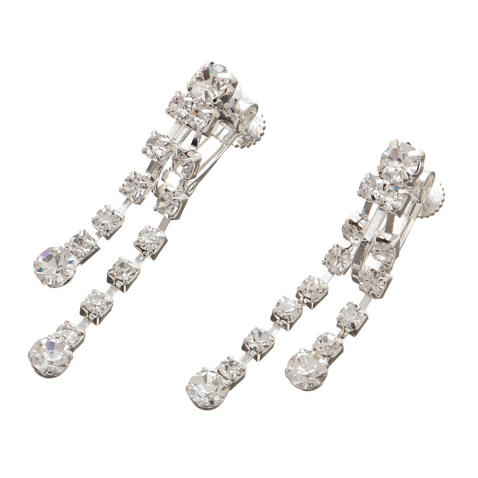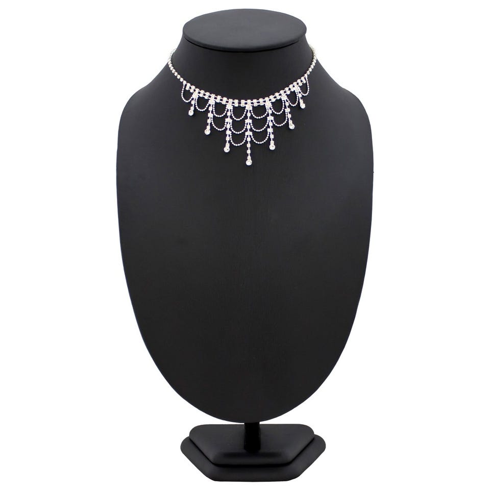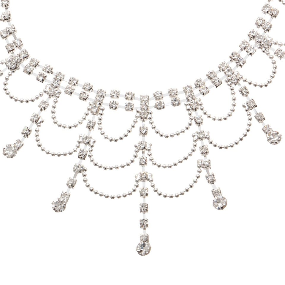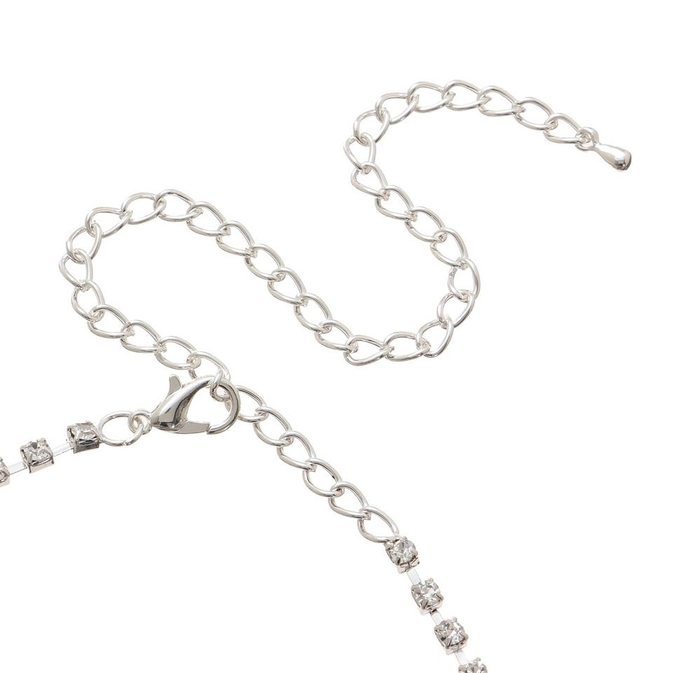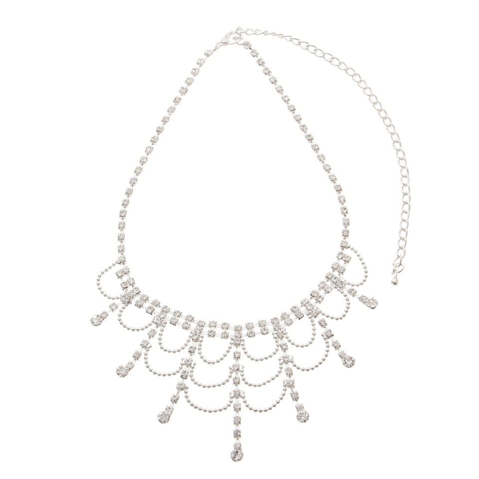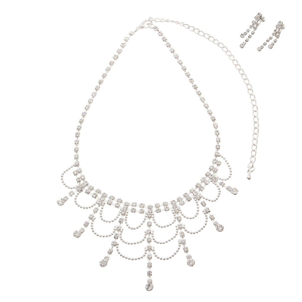 レディース ドレープデザイン ラインストーン ネックレス&イヤリング シルバー