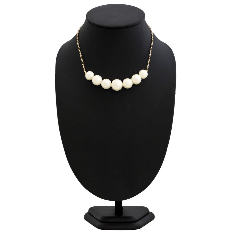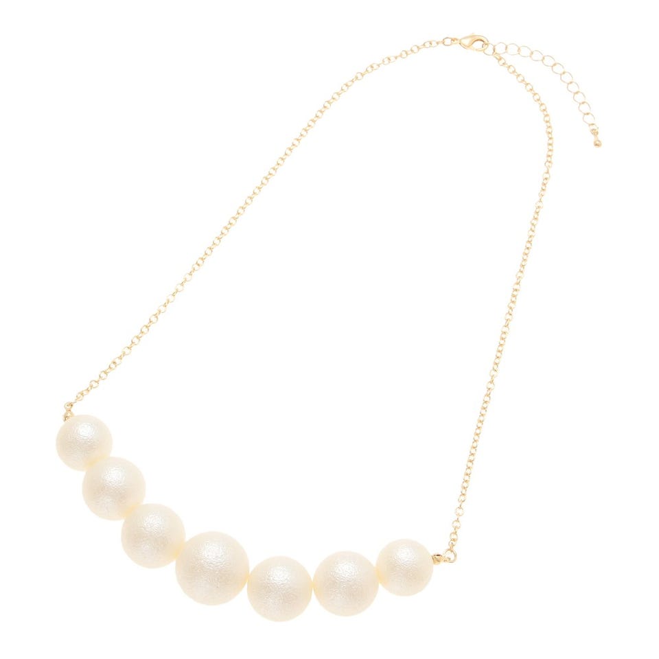 7つのパールビーズが連なった愛らしい印象のネックレス。フリーサイズなのでどなたでもお使いいただけます。パーティーシーンのドレススタイルにプラスしてみてはいかがでしょうか。