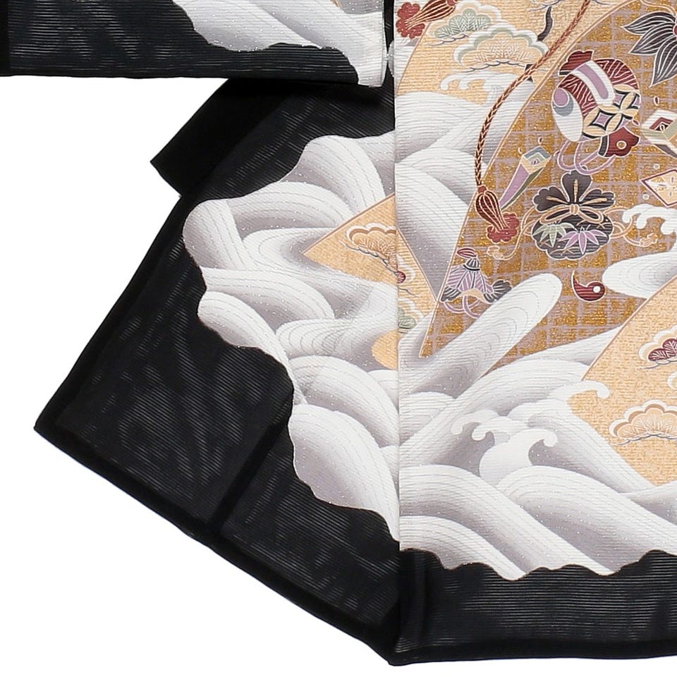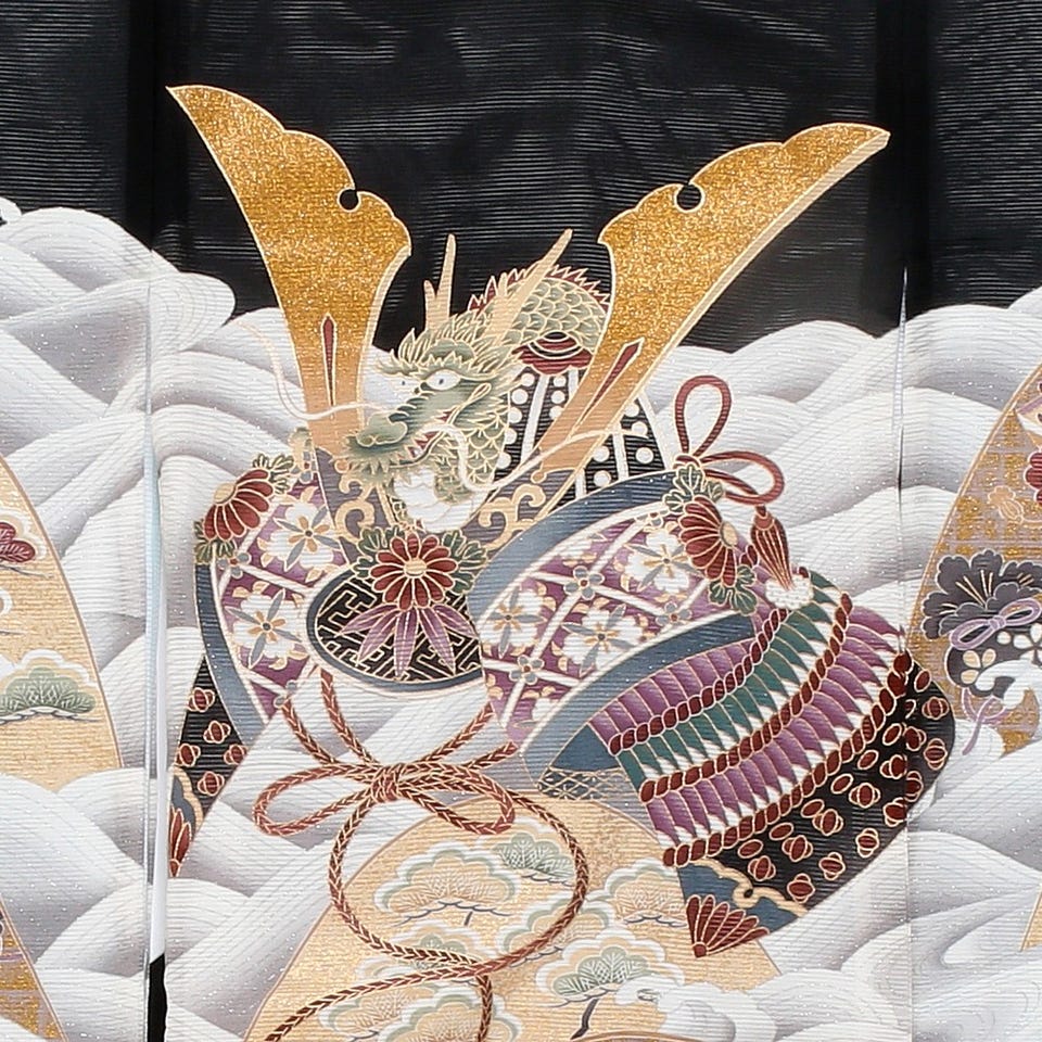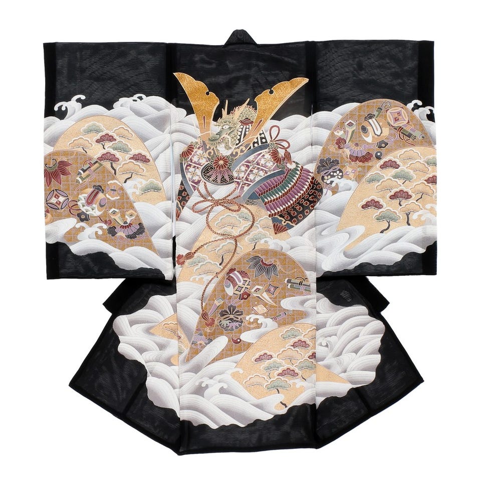 男の子 お宮参り 産着・絽(夏用)レンタル6点フルセット 正絹 兜 白波 ブラック