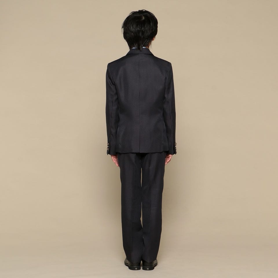 エレガントなストライプ柄のスーツ6点セットです。微光沢感のある織り柄シャツに、小紋柄のネクタイを合わせた華やかなスタイリング。パーティーや卒業式におすすめです。