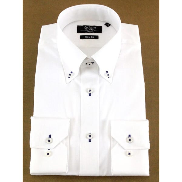 アダム&イブ メンズワイシャツ 長袖 白 無地 (Mサイズ / Lサイズ / LLサイズ) ホワイト Mサイズ