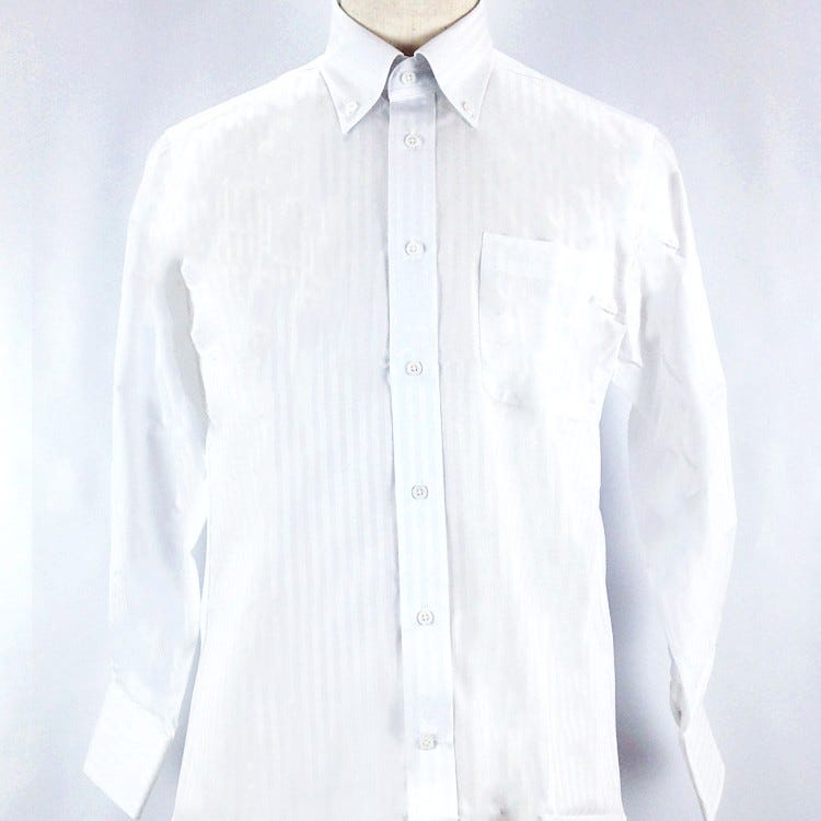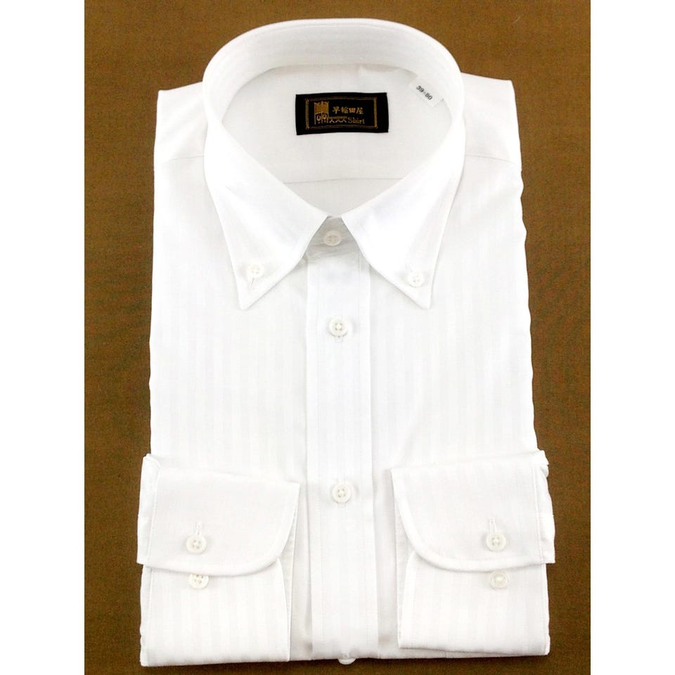 早稲田屋 メンズワイシャツ 長袖 ボタンダウン 白 シャドーストライプ (Mサイズ / Lサイズ) ホワイト Mサイズ