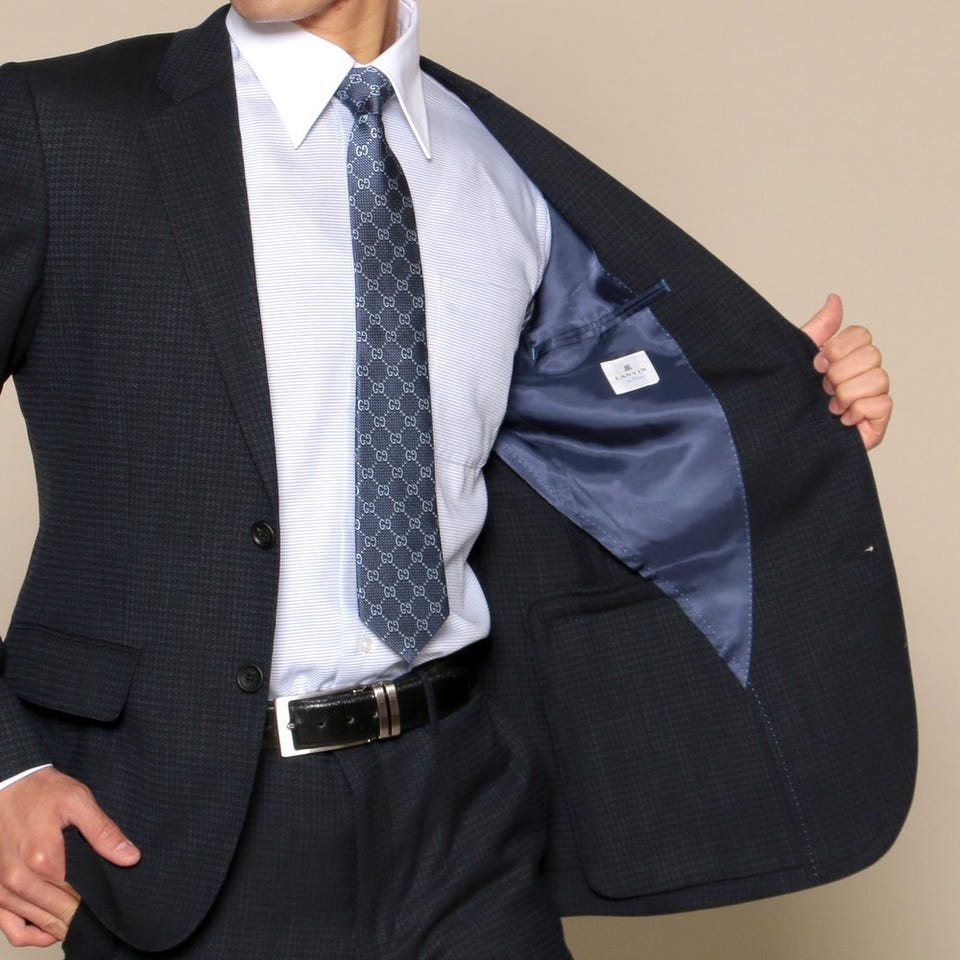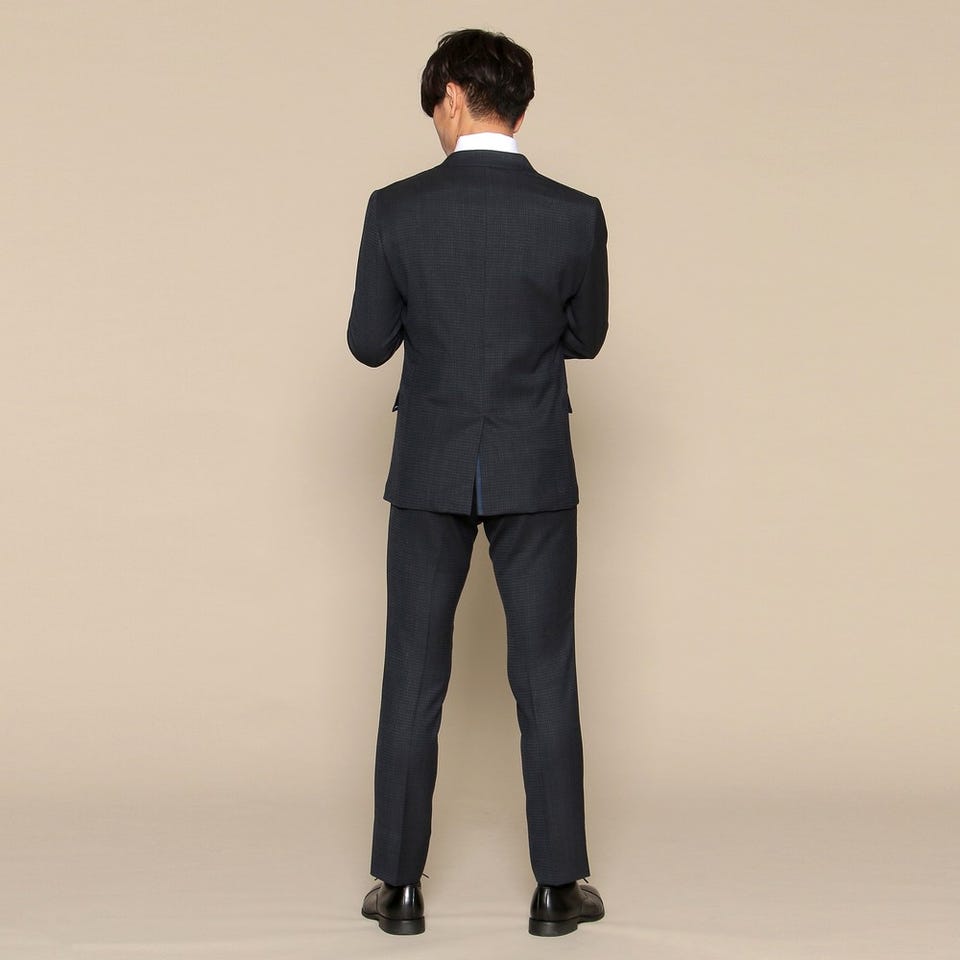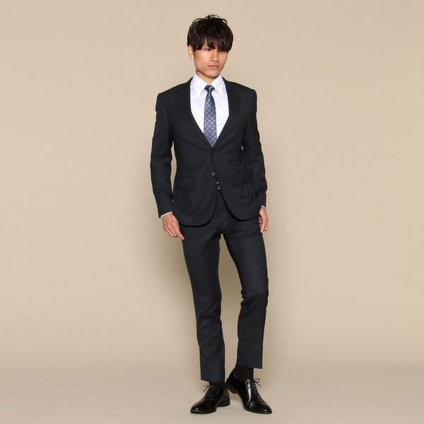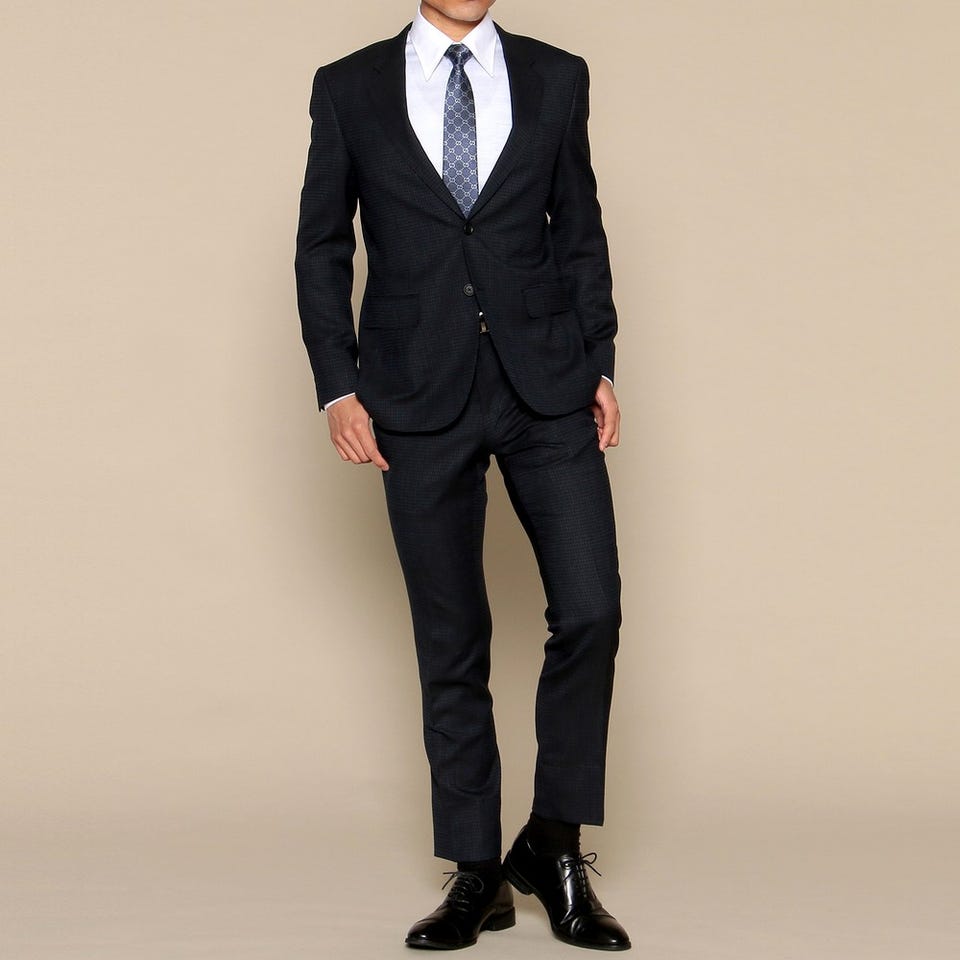「ランバンオンブルー」のスタイリッシュなネイビーのスーツです。遠目には無地に見える、細かい柄を施した上品なデザイン。普段は柄物に手を伸ばさない方にもおすすめです。※破損等でご希望の商品を準備出来ない場合は、同等の商品を発送する場合がございます。※写真はイメージです。現物と異なる可能性がございます。あらかじめご了承ください。シミや臭いが残る可能性があるため、香水のご利用はご遠慮下さい。