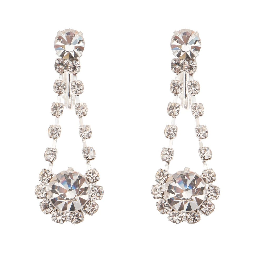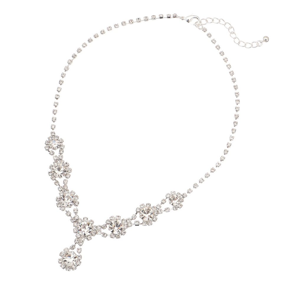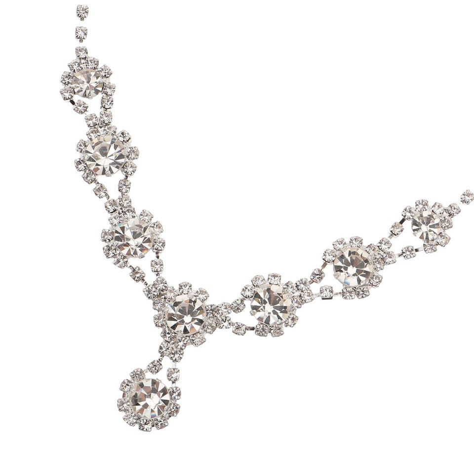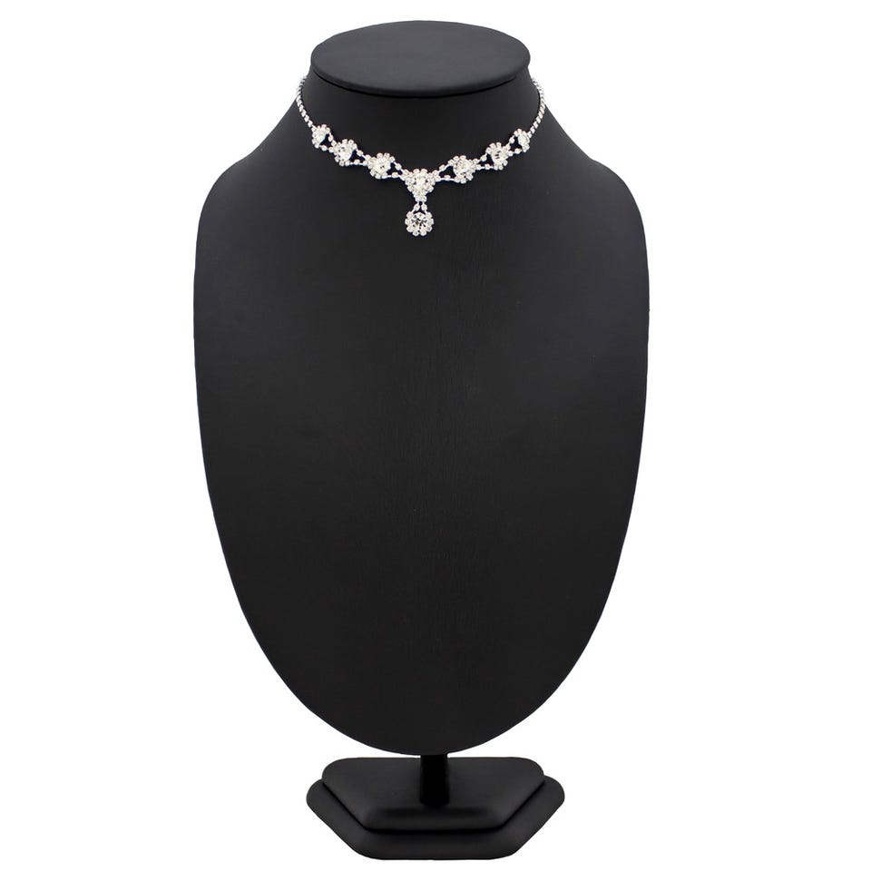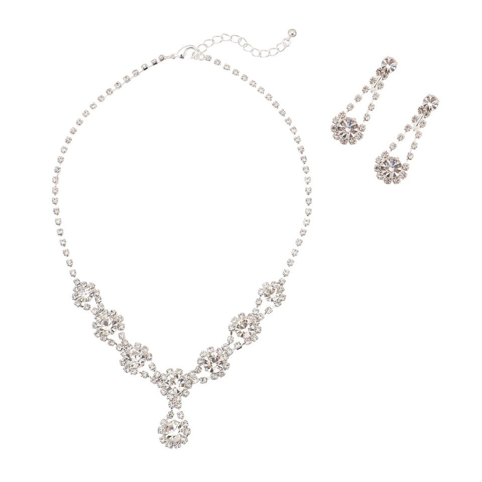 レディース しずくモチーフ ラインストーン ネックレス&イヤリング ホワイト
