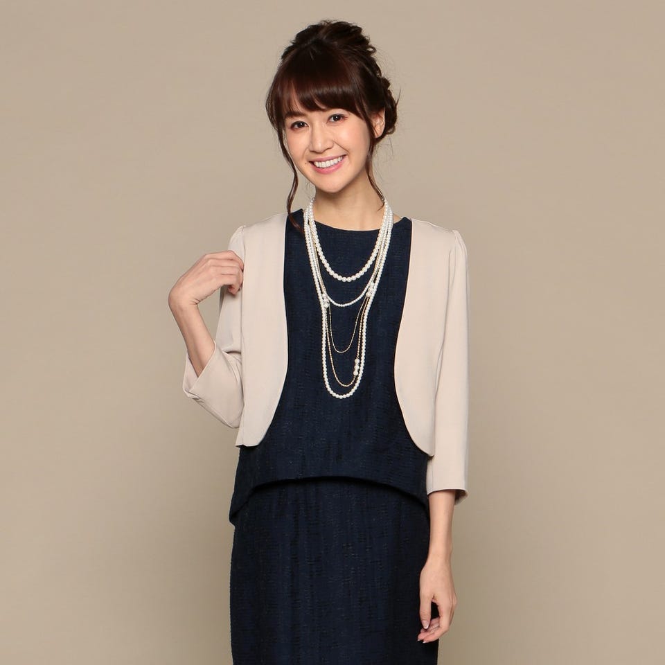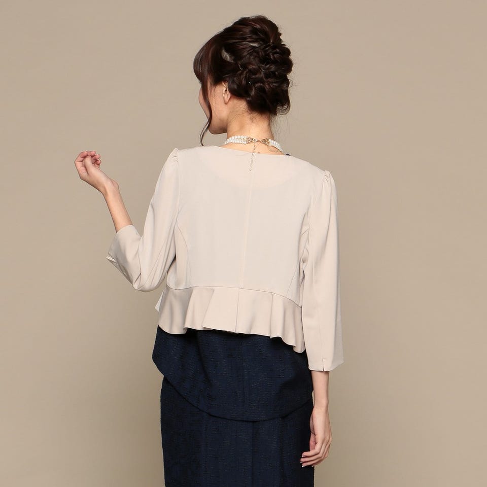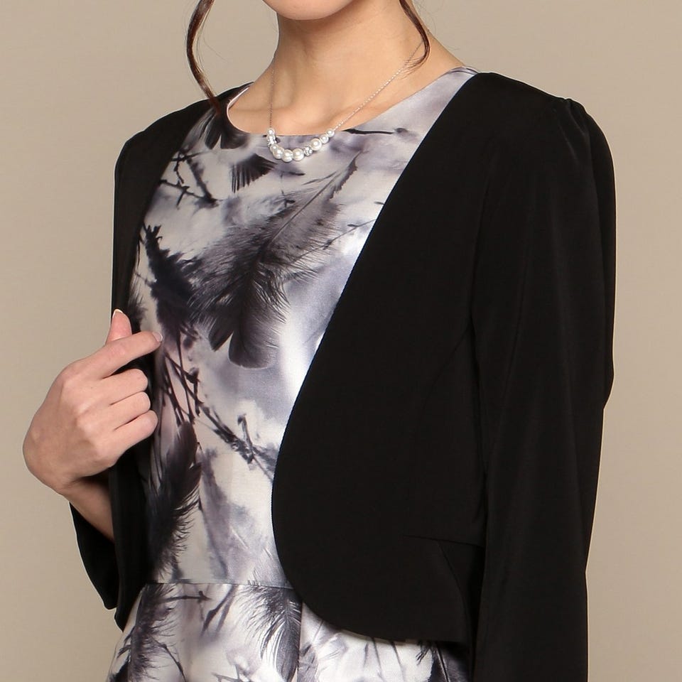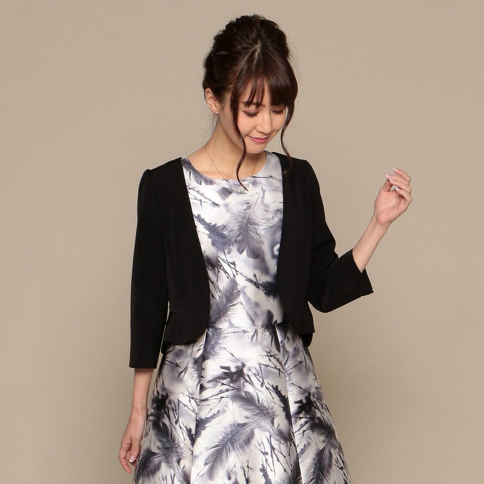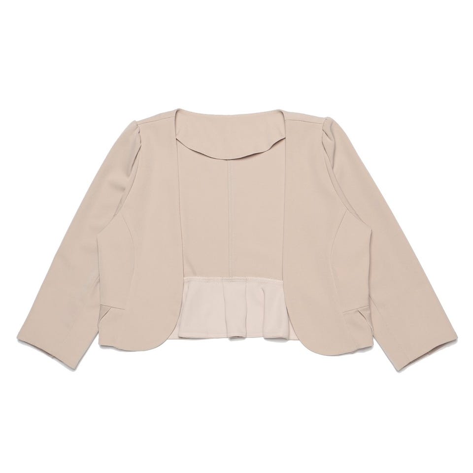 すっきりとした首元を演出するノーカラーのボレロです。シンプルながらも計算された切り替えで、お洒落に仕上げています。スカートはもちろん、パンツを合わせてクールに着こなすのもおすすめです。