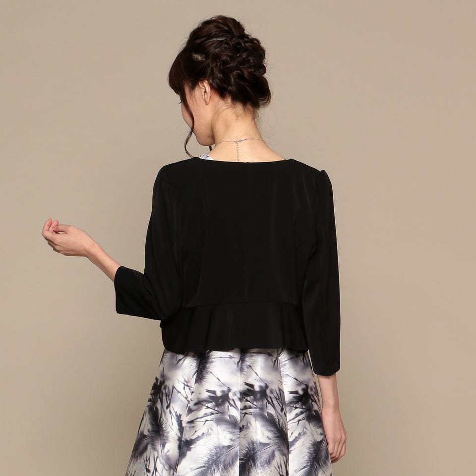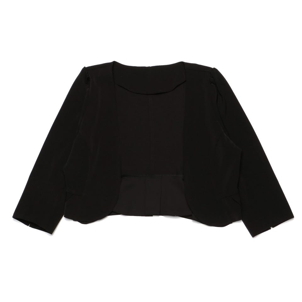 レディース ノーカラー 裾フリル ボレロジャケット ブラック 11号