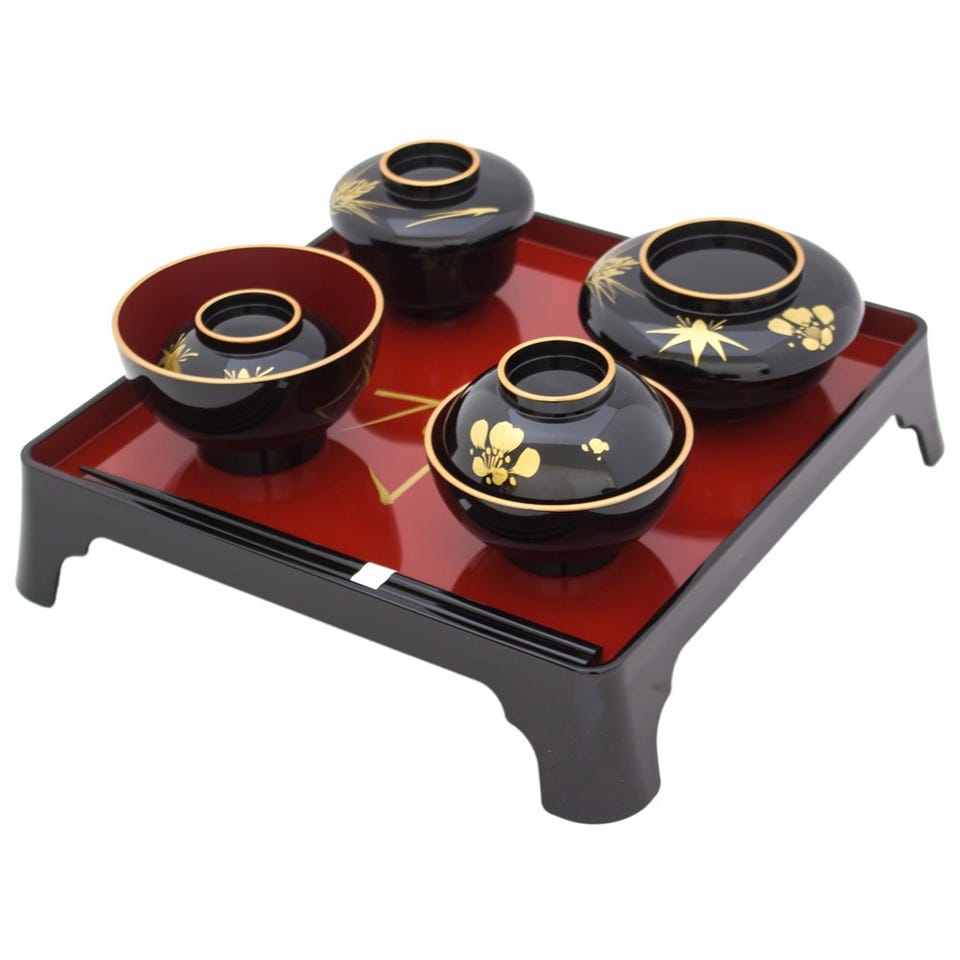 または食べやすい握り飯等汁椀:ハマグリ、鯛、エビなどのお吸い物平椀:季節の煮物つぼ椀:酢の物やお漬物などさっぱりしたもの二の膳:尾頭付きの鯛の丸焼など