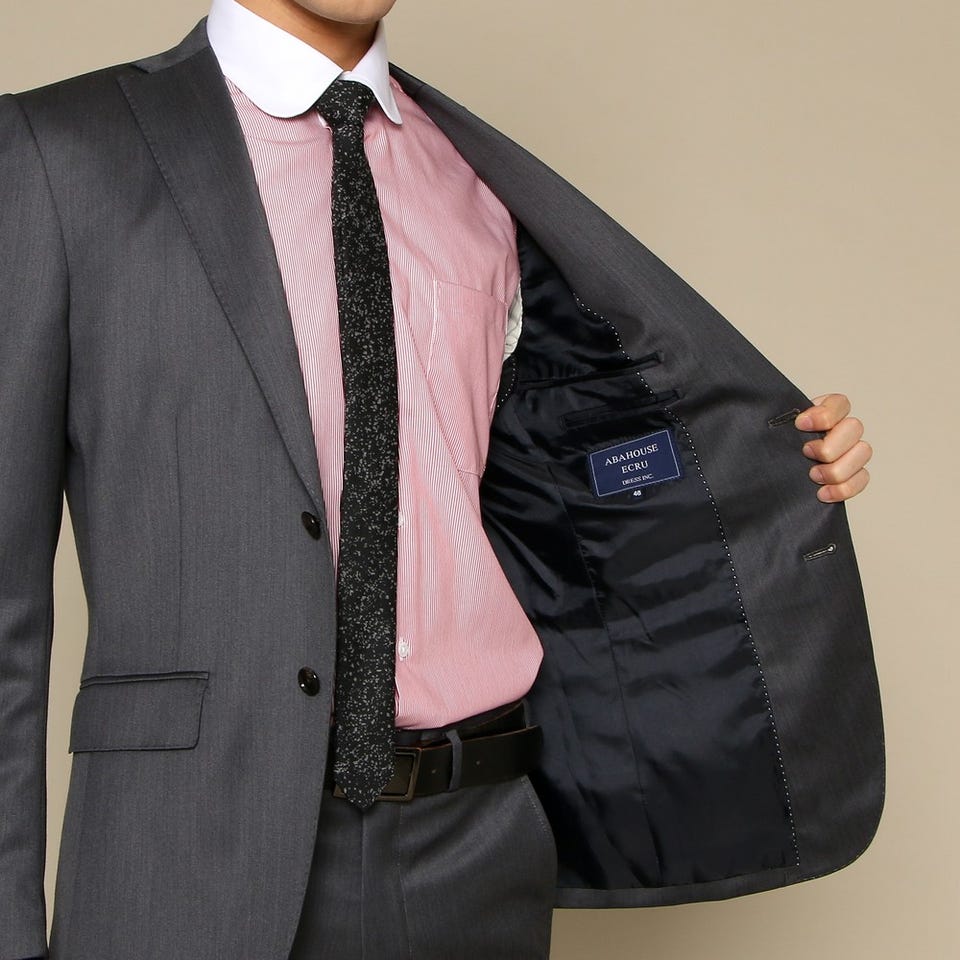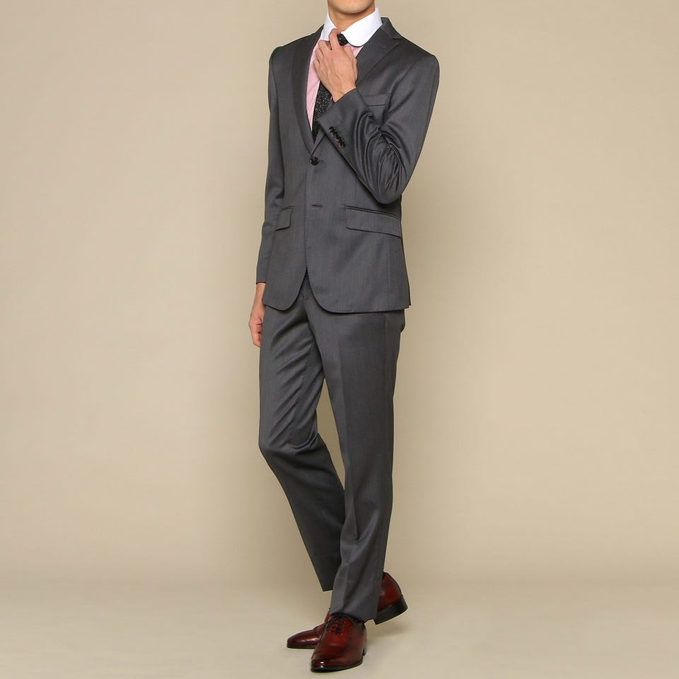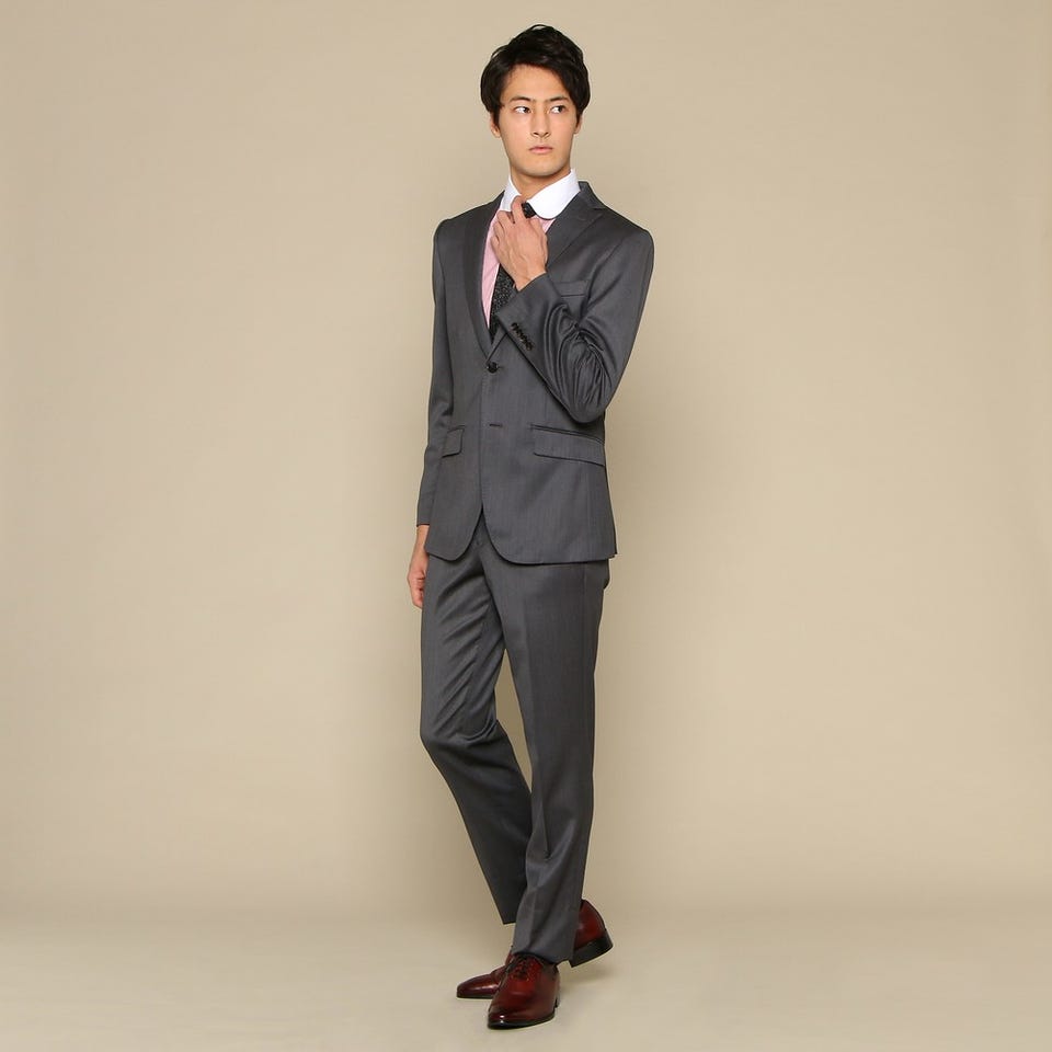 スタイリッシュな着こなしをお楽しみいただけるスーツです。ストライプのクレリックシャツがコーディネートのアクセントに。ビジネスやパーティーなど、さまざまなシーンでお使いいただけます。