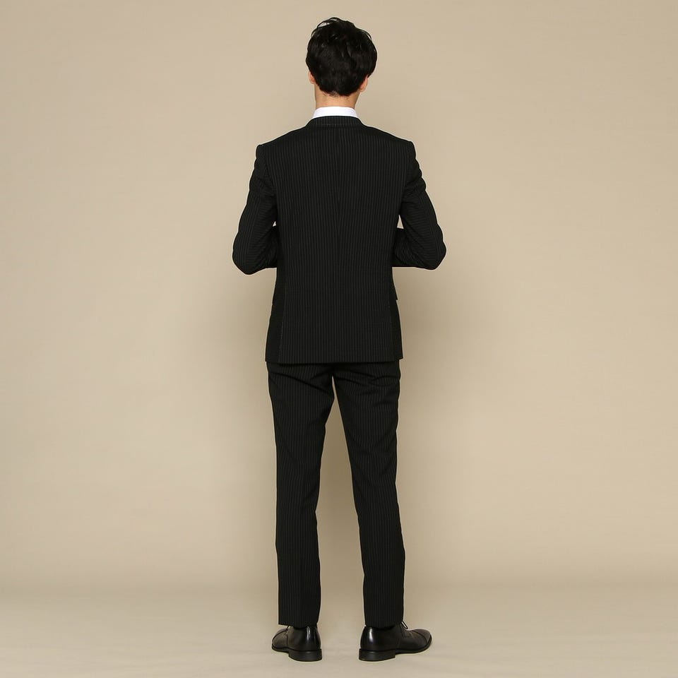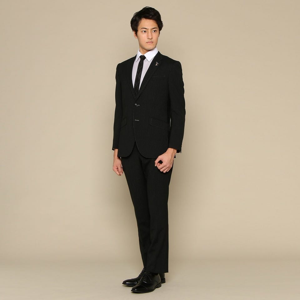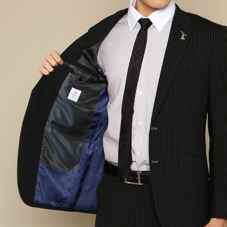 ランバンオンブルー ピンストライプ メンズスーツ2点セット(ジャケット+パンツ) ブラック Lサイズ