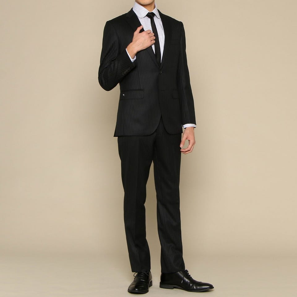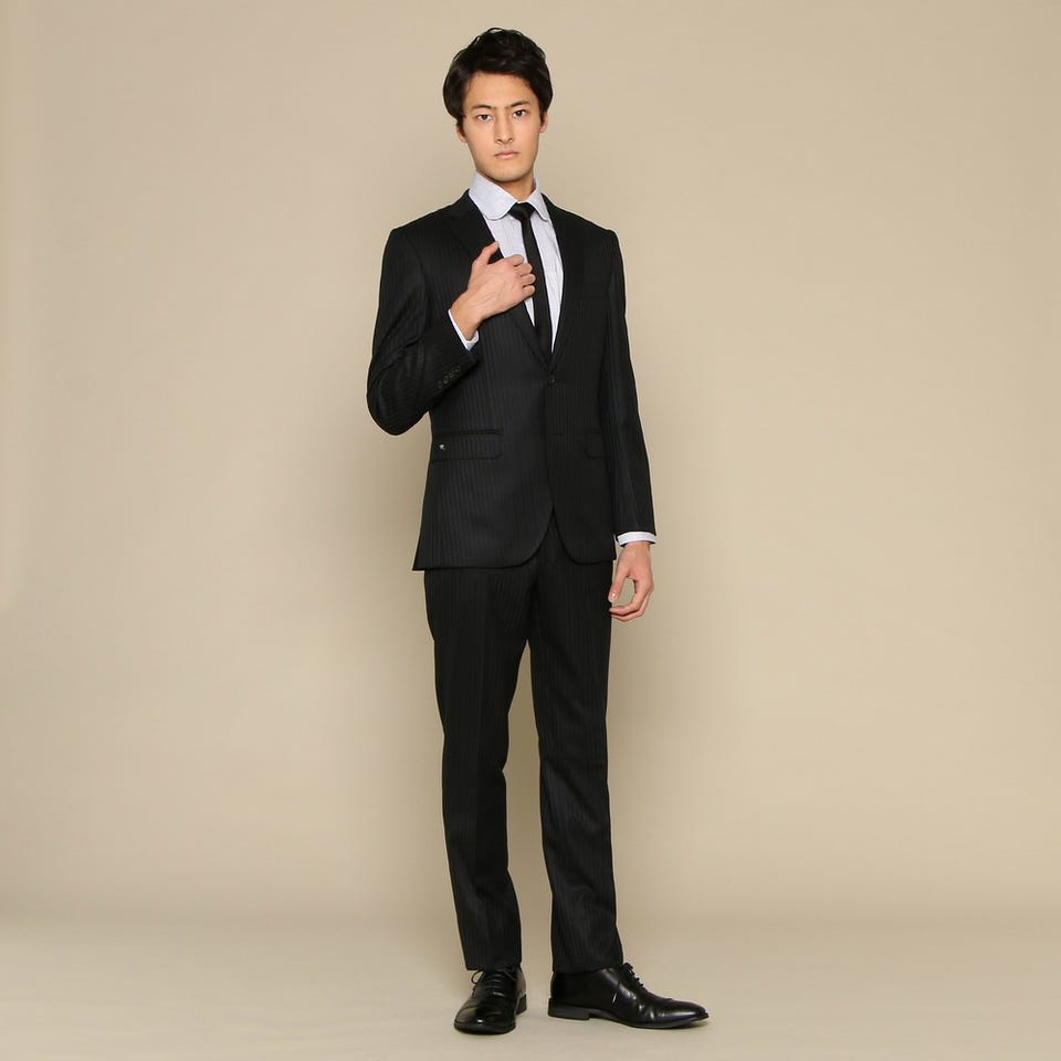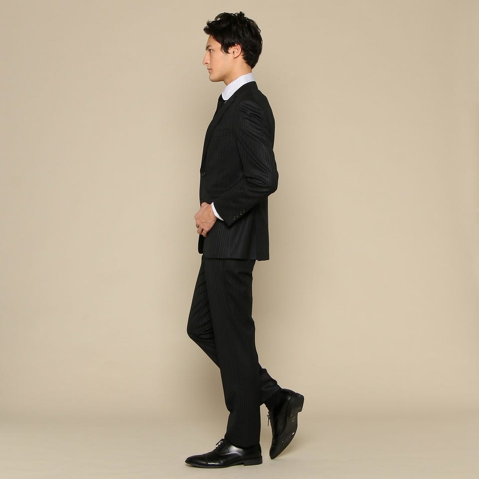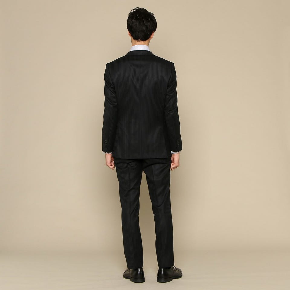 遠目には無地に見える、落ち着いた雰囲気のブラックスーツです。