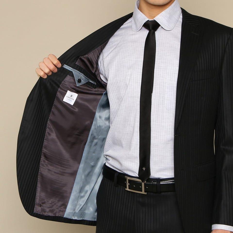 ランバンオンブルー シャドーストライプ メンズスーツ2点セット(ジャケット+パンツ) ブラック ブラック Mサイズ