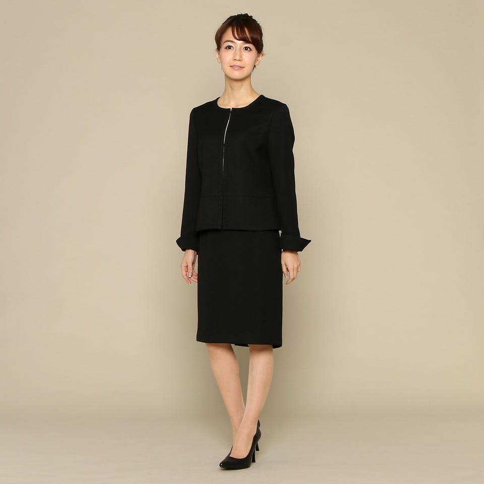 リフレクト セレモニースーツ2点セット(ノーカラージャケット+スカート) ブラック 11号