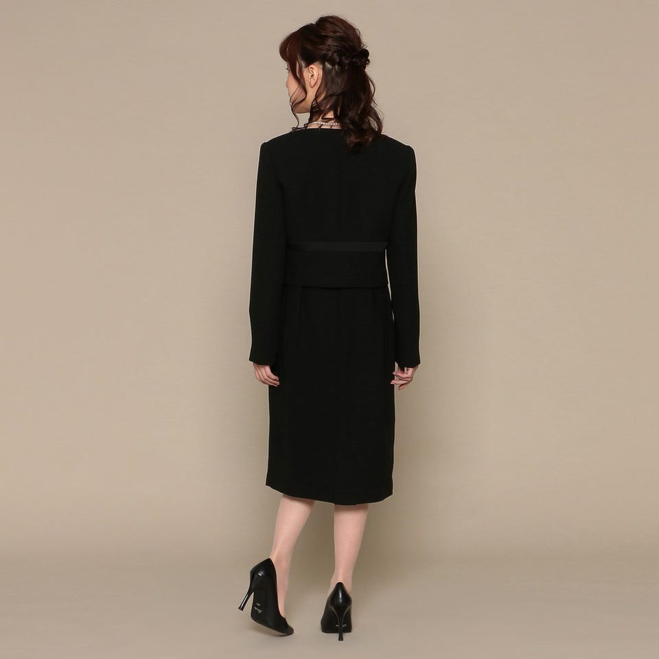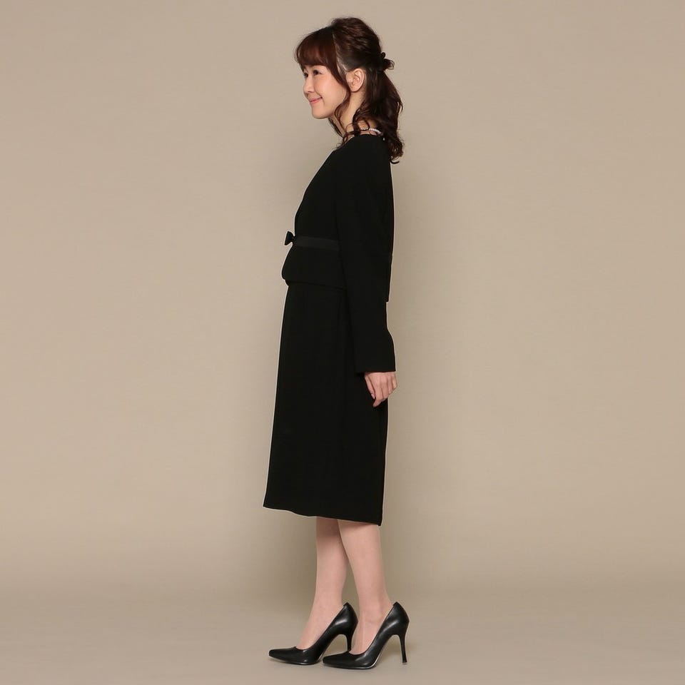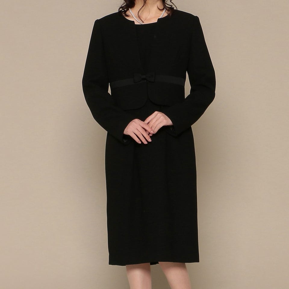 ロイヤルパーティー ワンピーススーツ3点セット(ジャケット+ワンピース+リボンブローチ) フォーマルブラック ブラック 9号