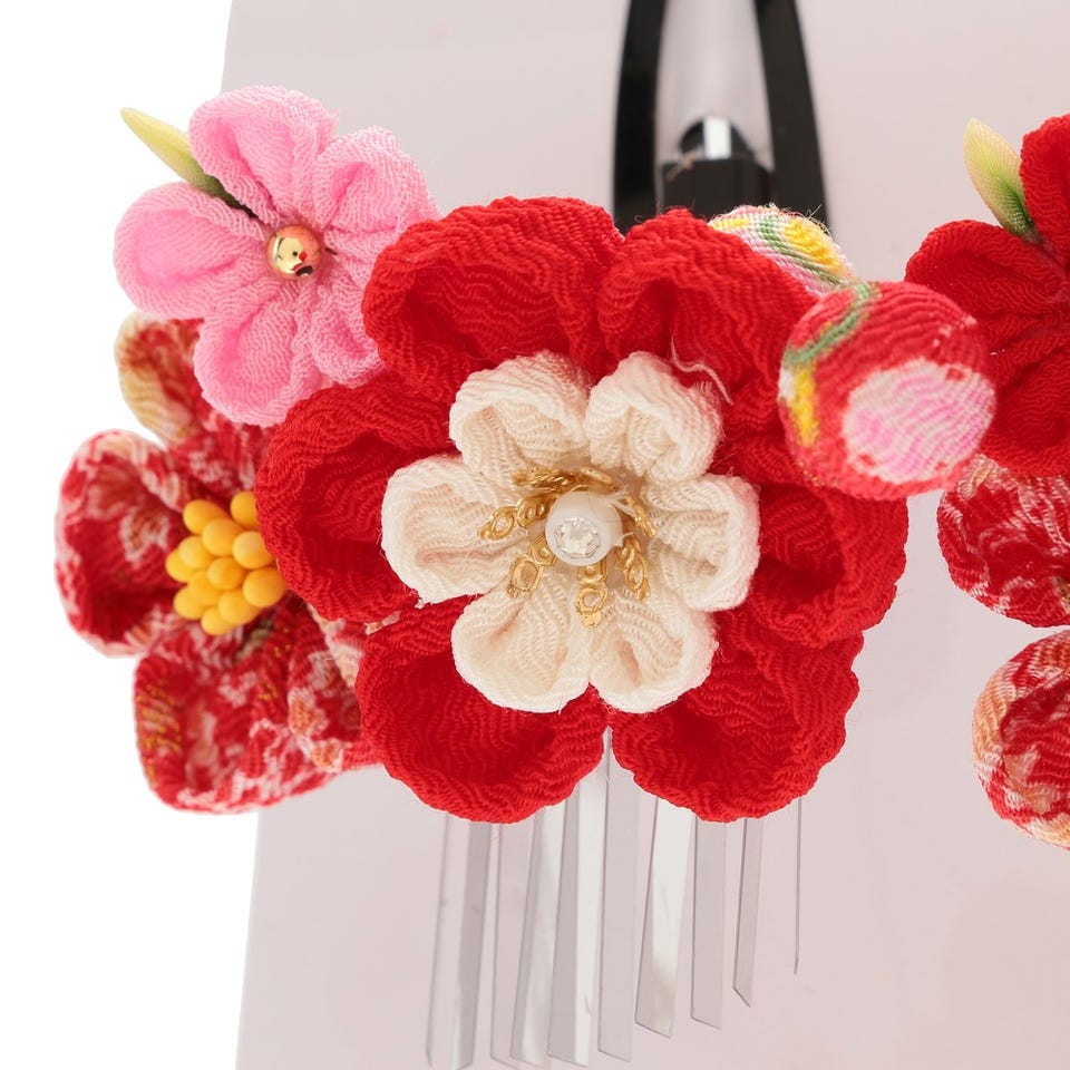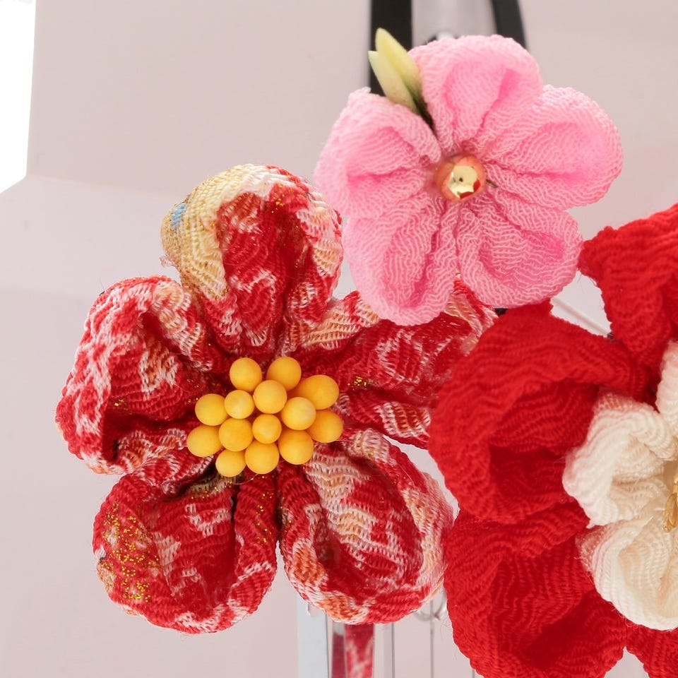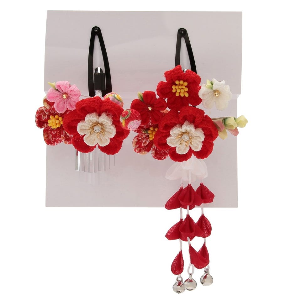 七五三/節句 和装髪飾り 2点セット パッチン留め (レッド) レッド