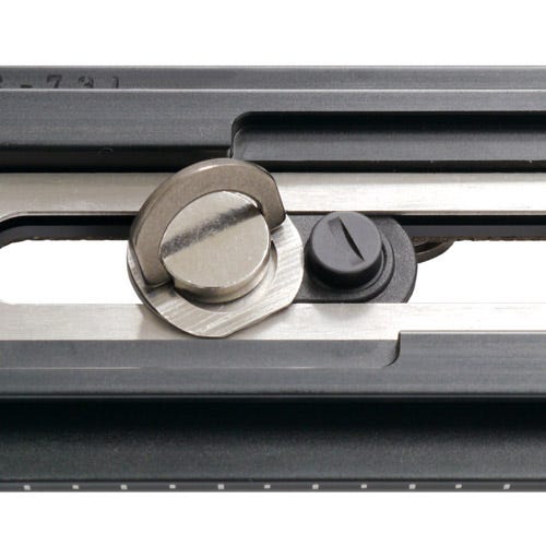 クイックシュープレートは前後にスライドします。さらにカメラネジ自体もスライドしますので、様々な機材の前後バランスの調整が可能です。カメラとシュープレートの回転防止や、正しい位置に取り付けるための「ビデオボス」を装備しています。※ビデオボスは押すとへこみます。