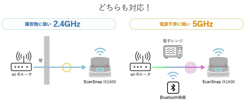 - Wi-Fi 2.4GHz/5GHz帯に対応