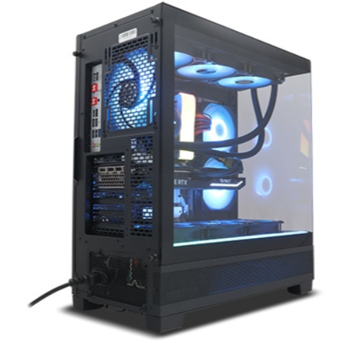 6基の光るケースファン(ボトム:120mm×3、リア:120mm×1、サイド120mm×2)と、最大3基の水冷CPUクーラーファンの計9基のファンを搭載できます。色鮮やかに光りながら強力な熱排気を行い、高い冷却性能を発揮します。