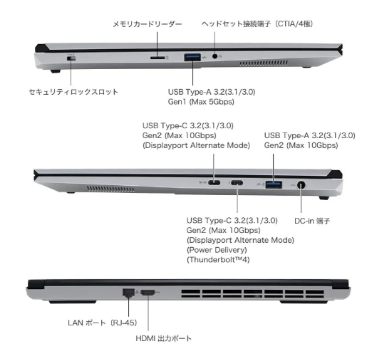 IEEE802.11 ax/ac/a/b/g/n (インテル Wi-Fi 6E , 2x2, 最大 2.4Gbps) + Bluetooth 5.3
