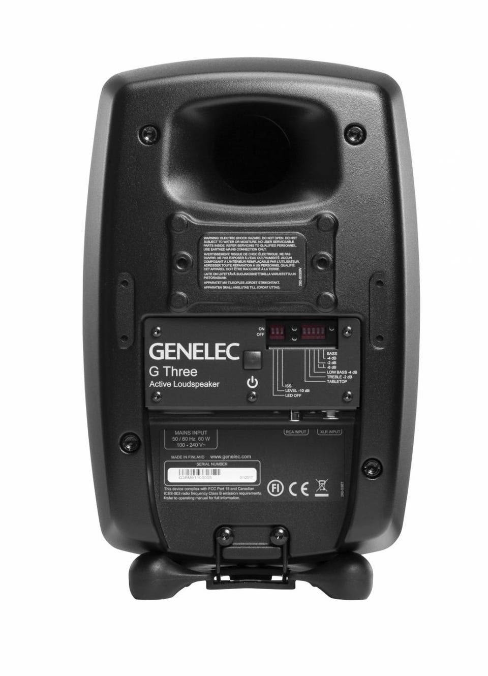 GenelecのG Threeアクティブ・スピーカーは、コンパクトなサイズながら、レコーディング・スタジオで圧倒的なシェアを誇るGenelecのサウンドをご自宅で体感できます。ツイーターとウーファーそれぞれに最適化された50Wのパワーアンプを内蔵し音圧レベルは104dBを実現。周波数特性は47 Hz - 25 kHzまで拡張され、スムーズな高音域からリッチな低音域までをストレスなく再現します。ルーム・レスポンス補正やDCW™ テクノロジーなどスタジオ譲りの機能を贅沢にも搭載しています。
