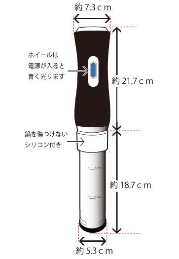 これ1台で加熱調理ができる調理器。この機械自体が熱源となり、お水の温度上昇から継続的な温度管理まで行います。コンセントに挿して、お持ちの鍋に挟み、時間と温度を設定すれば、鍋の中の水温を一定の温度で保つことができます。食材を袋の中に入れて、湯の中に沈めて調理をすることによって、ローストビーフやチャーシューが誰でも簡単に作れます。