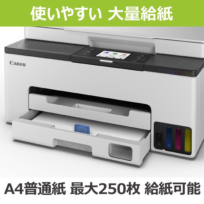 インクボトル各色1本でブラック約3,000枚※1、カラー約3,000枚※1の大量出力が可能。エコノミーモードなら、ブラック約4,500枚※1、カラー約4,500枚※1プリントできます。特大容量タンクだからカートリッジ式のインクと比べて補充頻度も少なく済み、コストを気にせずカラー印刷ができます。