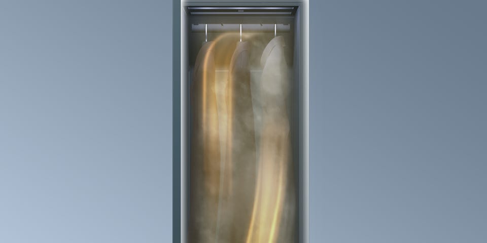 たっぷりのスチームを内部に行きわたらせて衣類のシワのばし。毎日着るからこそシワが気になる、スーツや制服などの衣類も掛けたら自動でスッキリ仕上がります。