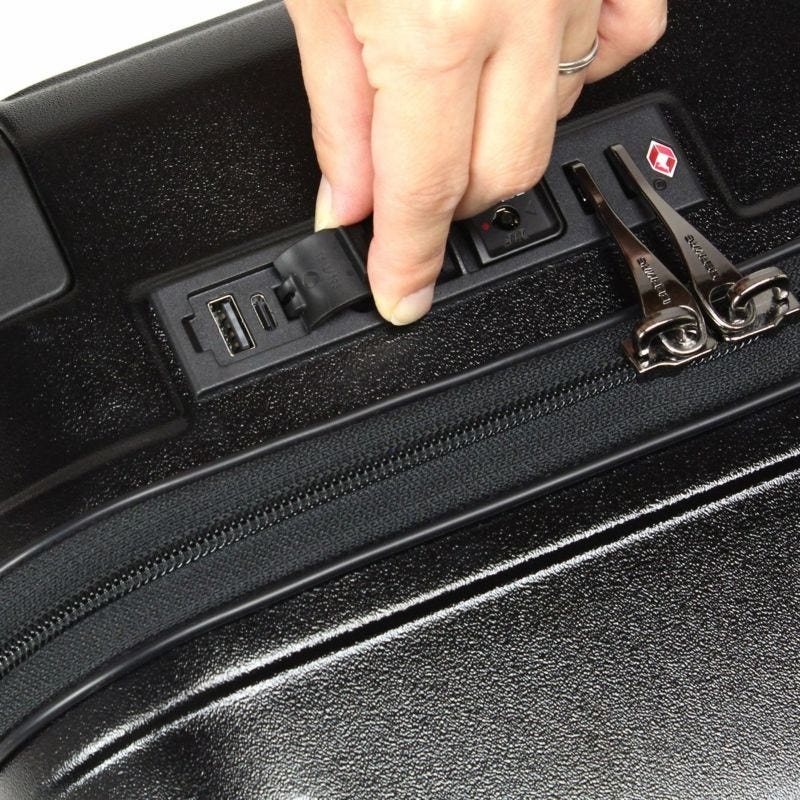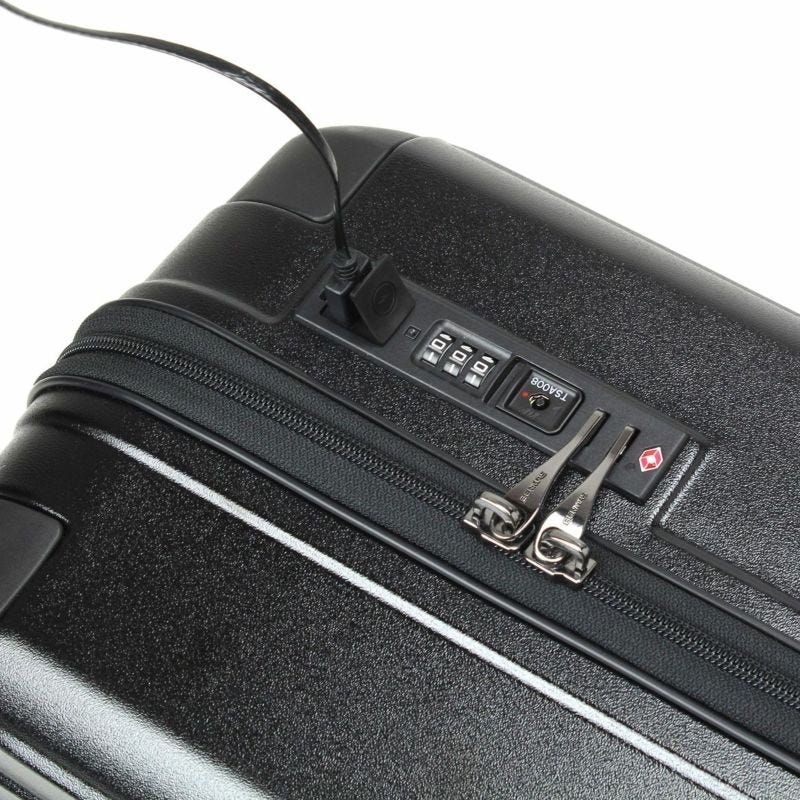 USBポート(Type-A 1口・Type-C 1口付き)・HINOMOTO製ストッパー付き静音キャスター(SILENT RUN)・伸縮ハンドル3段階調節(地面からの高さ約99cm/93cm/87cm)