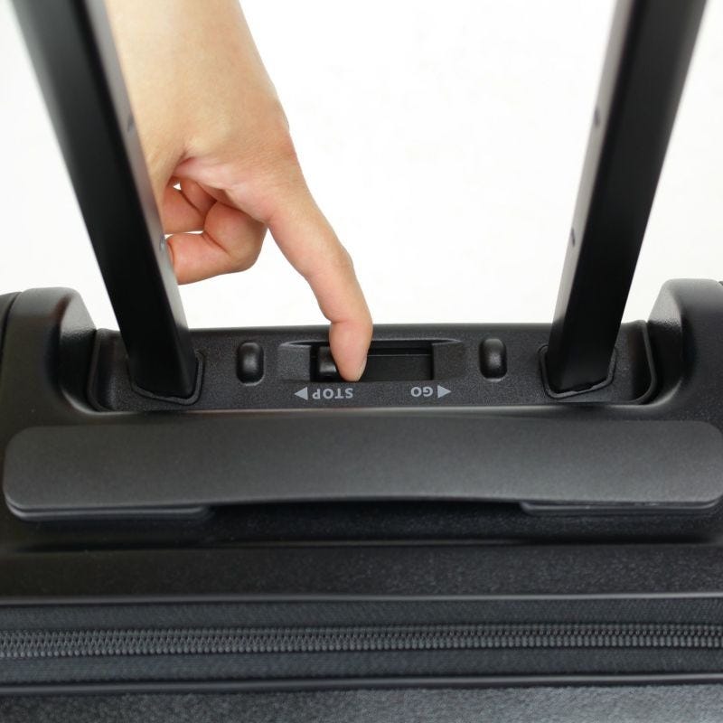伸縮ハンドルのベースに設置されたスライドスイッチで簡単に背面側の2輪ロック・アンロックができます。信号待ちや電車・バス乗車時に不用意な動きだしを制限することができ、快適にご利用いただけます。