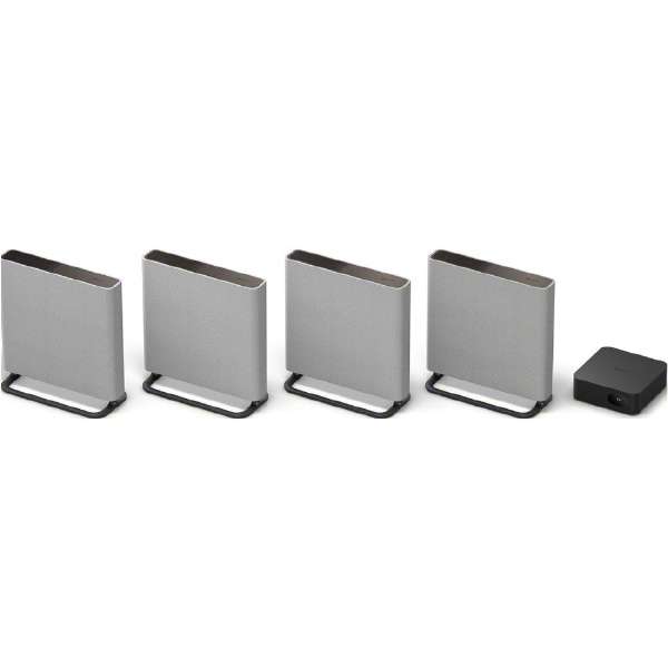 コントロールボックスはTVとHDMIで接続し、4つのスピーカーはコントロールボックスと無線でワイヤレス接続します。4つのスピーカーは必ずしも正方形に設置する必要はありません。また高さを合わせる必要もありません。音場最適化技術により、スピーカー間や天井までの距離を内蔵マイクで自動計測し、スピーカーの置かれている空間を把握。その情報を元に広大な音場空間を創り出し、リビングが音で満たされるような新しい360立体音響を体験できます。