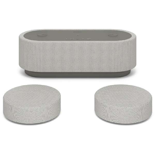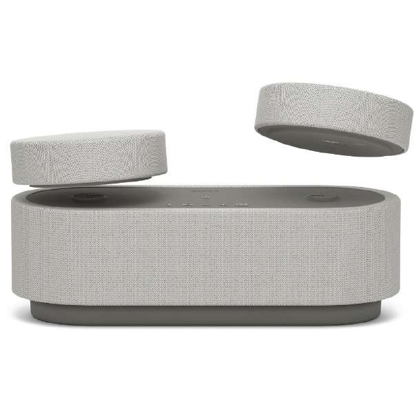 フロントスピーカー上部に手のひらサイズのリアスピーカーを搭載した、新形状の3in1ボディ。3基のスピーカー間の接続には無線を採用、さらに約30時間(*)のロングバッテリーを内蔵したことで、完全ワイヤレスな視聴環境を実現しました。小型ボディにより設置場所の制約が少なく、タブレットやスマートフォンなど好きなデバイスで、好きな場所で、好きなスタイルで、あなたの環境にカスタマイズして臨場感のある音をお届けします。