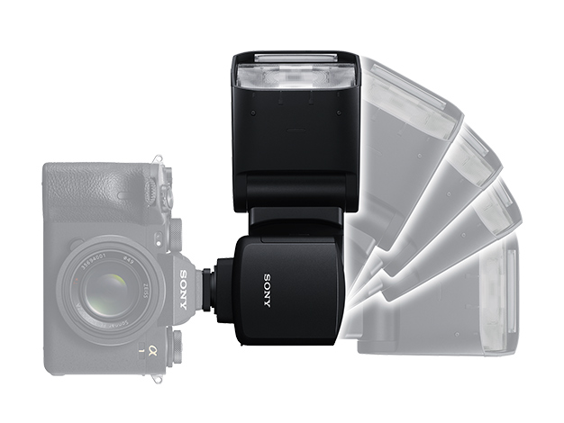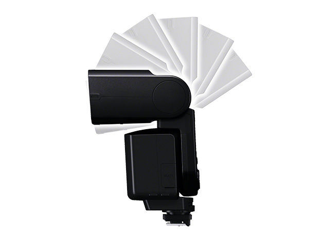 対応するカメラ(*)のシューに取り付けたとき、カメラの「外部フラッシュ設定」機能で、調光補正、光量比設定などフラッシュに関する詳細な操作がカメラから行えます。またクイックシフトバウンスの採用で、左右90°、上150°、下8°にフレキシブルに発光部分を動かすことができ、迅速に縦・横位置の切り換えができます。