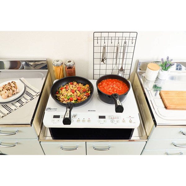 アイリスオーヤマ 2口 IH クッキングヒーター ブラック IHK-W12-B 工事不要 1400W 100V