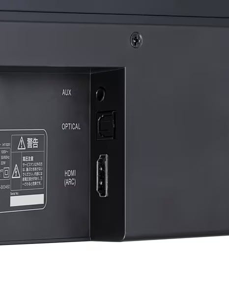 HDMI ARC:HDMI端子(ARC対応) OPTICAL:光デジタル角型端子(PCMのみ) AUX:3.5mmミニジャック(アナログ音声) Bluetooth:Bluetooth 4.2+EDR