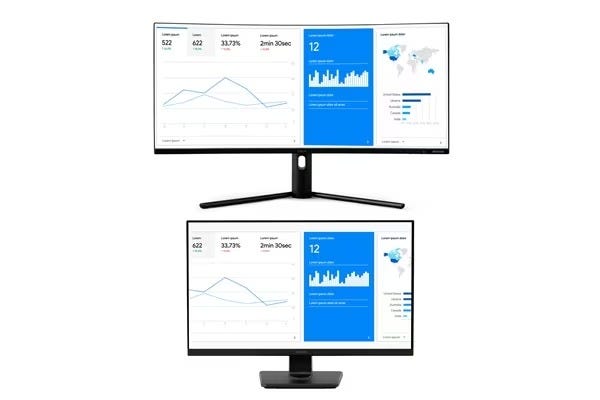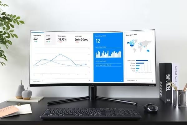 どの角度から見ても見やすい曲面液晶モニター。