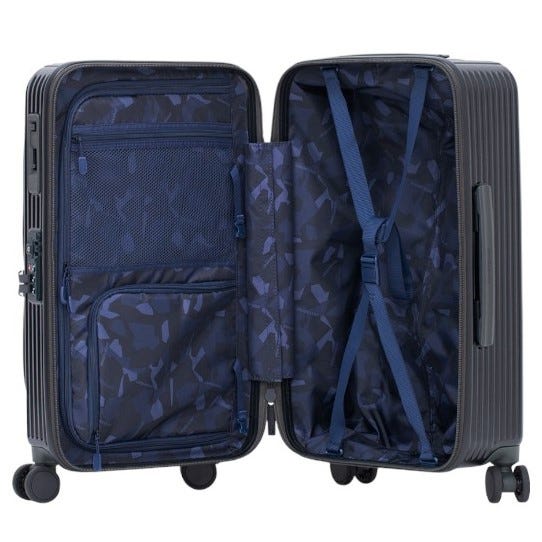 フロントワイドオープン。携帯、バッテリー、本、旅券、パスポートなどすぐに取り出したい物を収納出来る便利なポケット付きです。移動中でも簡単に取り出すことができます。