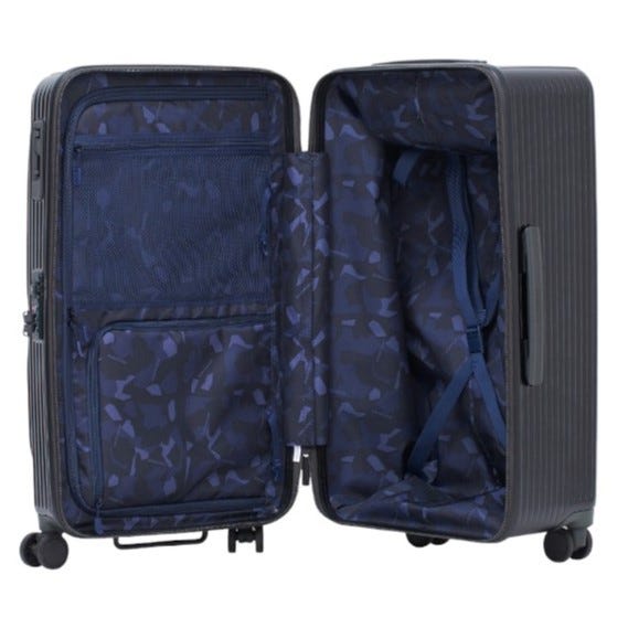 フロントワイドオープン。携帯、バッテリー、本、旅券、パスポートなどすぐに取り出したい物を収納出来る便利なポケット付きです。移動中でも簡単に取り出すことができます。