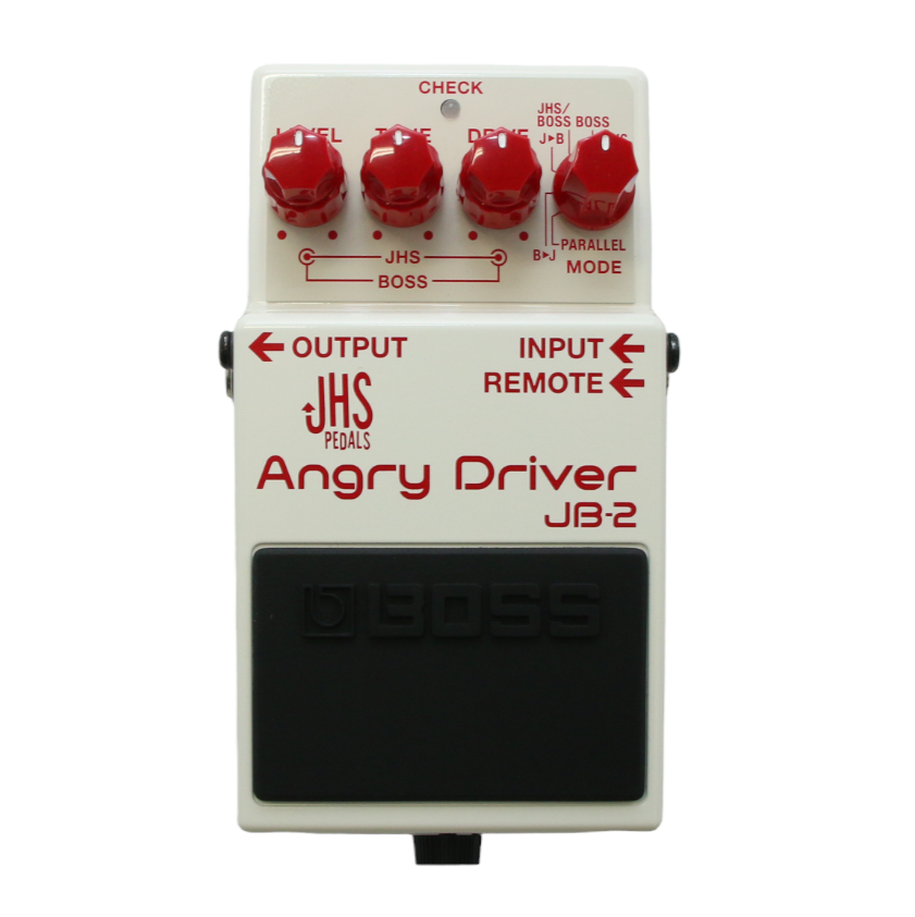 JB-2 Angry Driverは、2017年のコンパクト・エフェクター40周年を機に、BOSSと米国JHS Pedalsが特別に共同開発したコラボレーション・モデルです。両社を代表するモデル、BOSS BD-2 Blues DriverとJHS Pedals Angry Charlieをベースにした2つの回路を、それぞれの可能性を最大限引き出すようにチューニングして1つのペダル・ユニットへ搭載しました。