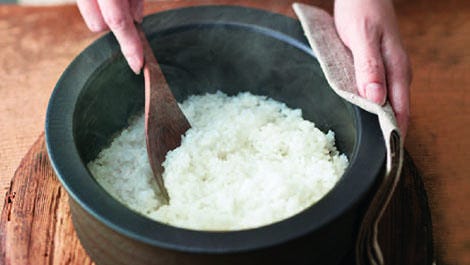 お米の粒と粒の間に残った余分な水分をとばし、甘みを凝縮し香りを引き出します。