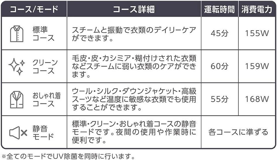 衣類をセットするだけで、シワ伸ばし・除菌・脱臭ができます。