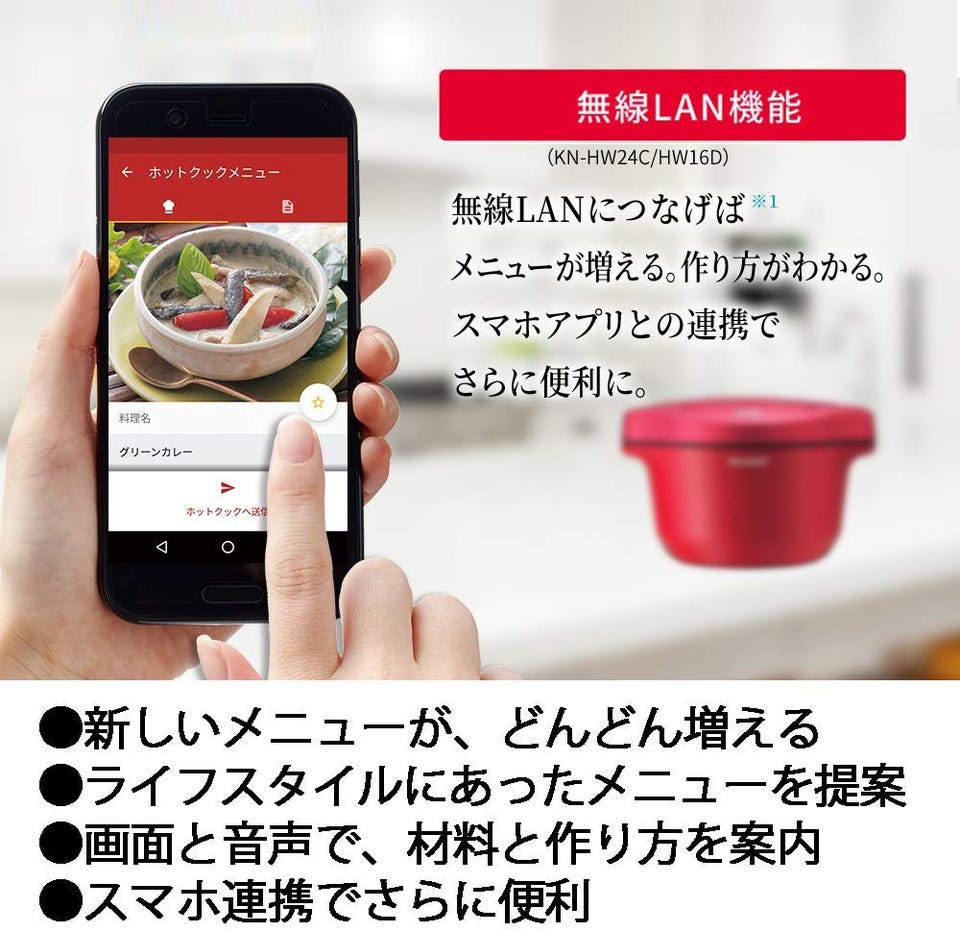 無線LANに接続することで、メニューの検索・提案を音声や画面で案内。 さらに、スマートフォンとも連携できます。