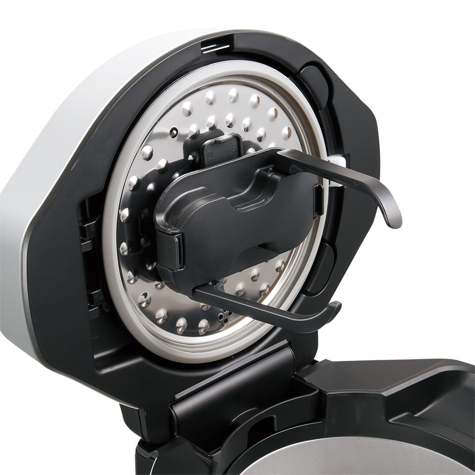 ホットクックの使い方はとってもカンタン。材料を入れて、ボタンをおせばOK。あとはおまかせで、ふたを開ければおいしいごはんができている。
