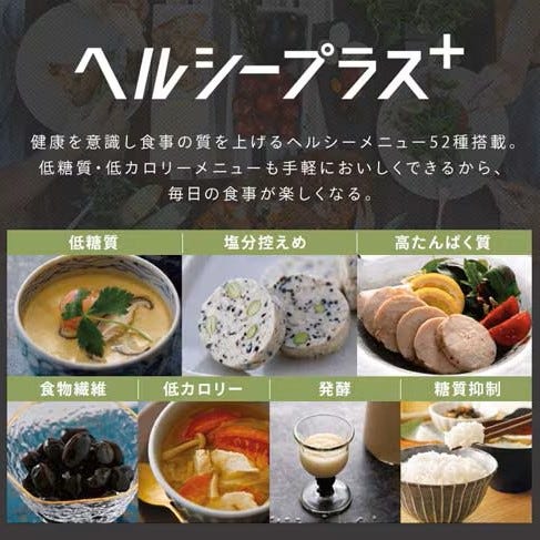 いろんな料理に挑戦したい方におすすめな“ヘルシープラスモデル[自動メニュー108種(ヘルシーメニュー52種)]。