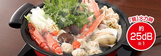・1000Wセーブモード・ワンタッチ とろ火・強火調節ボタン・切タイマー・火力表示(液晶)・運転音(約25dB/約33dB/約38dB)・マグネット式プラグ・山形の7段階火力表示