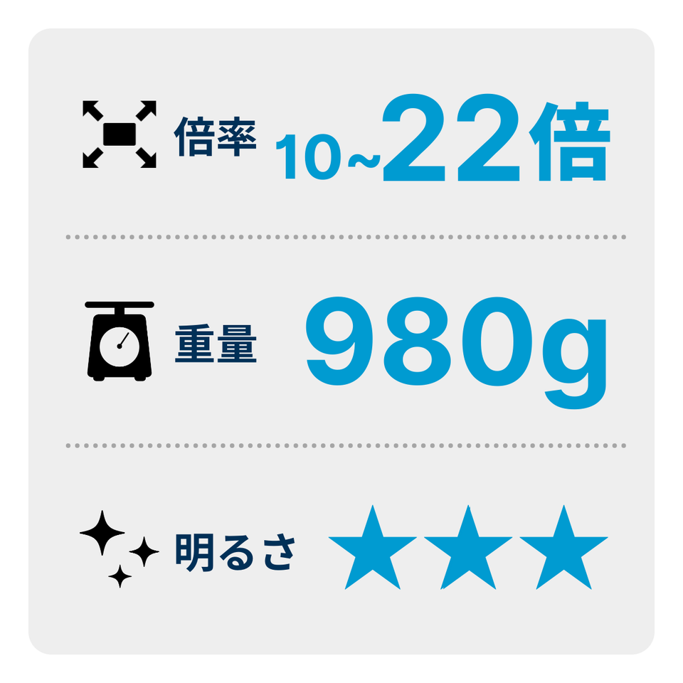 大きな対物レンズが特徴的なポロプリズム型独特の伝統的なスタイル。