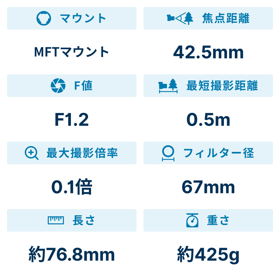 ライカの厳しい光学基準をクリアした開放F1.2「NOCTICRON(ノクチクロン)」の明るさと、9枚羽根の円形絞りの採用により、立体感とアウトフォーカス部の柔らかいボケ味を楽しめる大口径・中望遠レンズです。