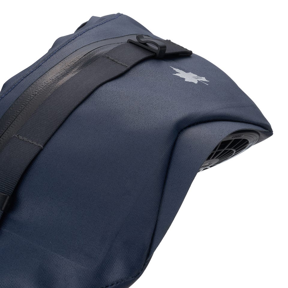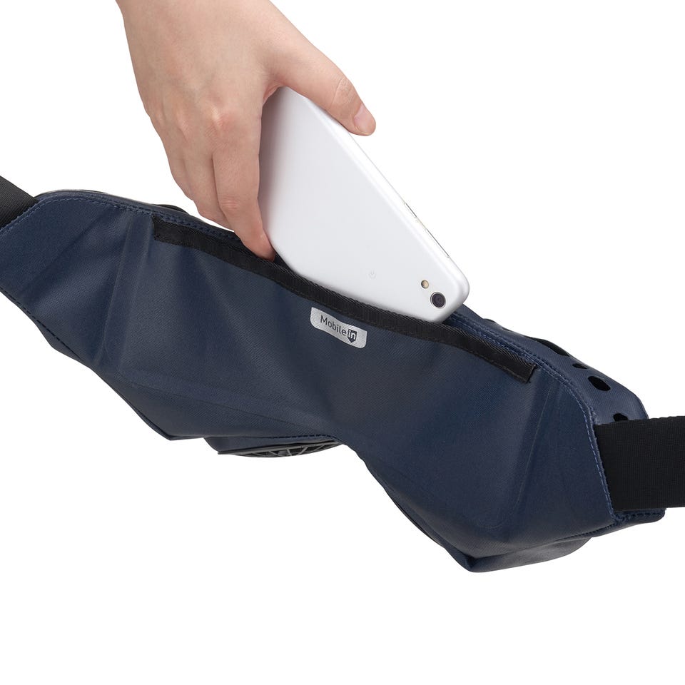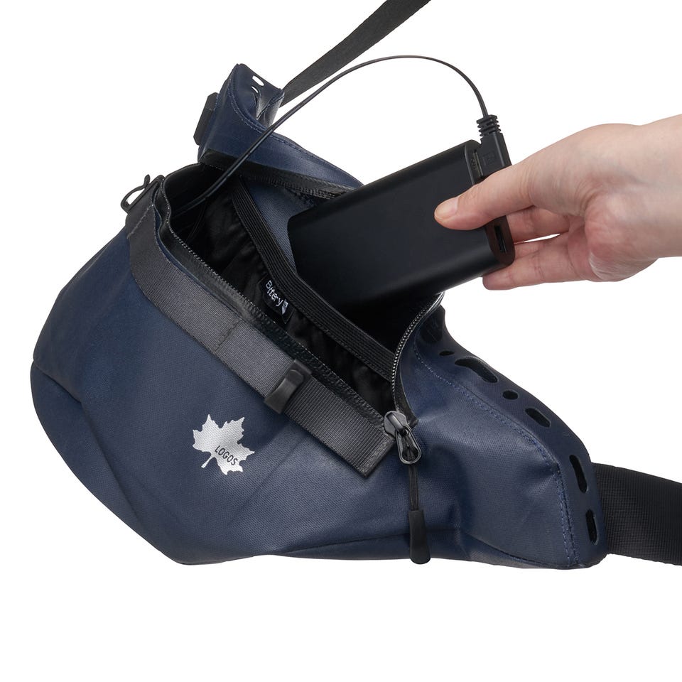また、ファンの吸気口を下向きに配置し、防水生地&止水ジッパーなど雨にも強い構造です。