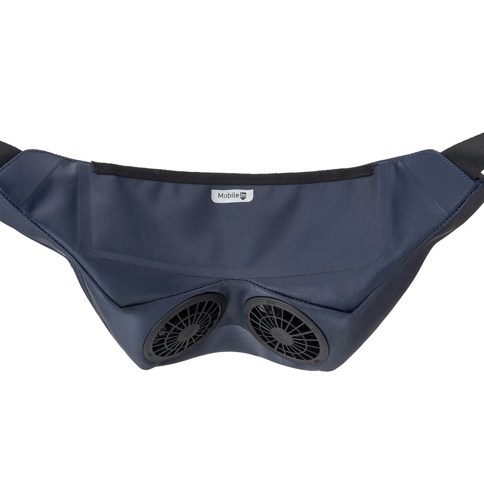 Vツイン気流を生む立体構造の2つのファンが、背中、脇、お腹への広範囲送風を実現したベルト式エアコン。