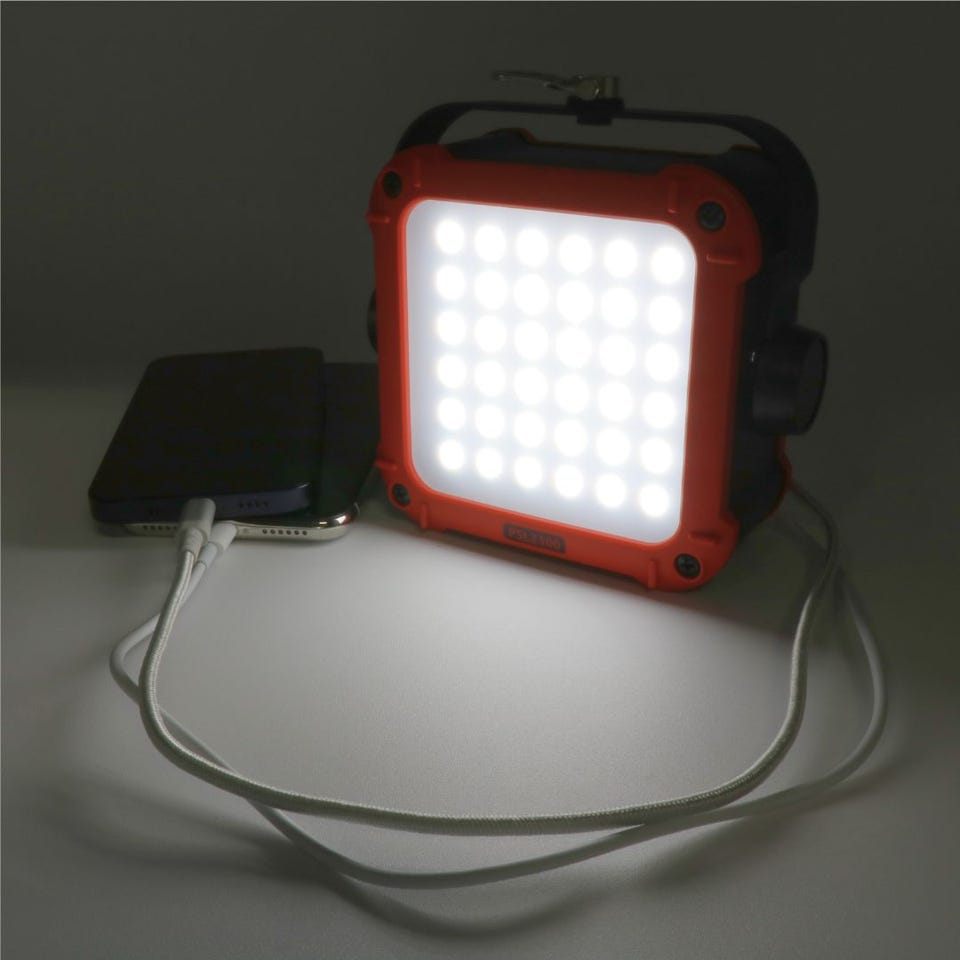 大容量パワーバンクと超高輝度1300ルーメンを実現。乾電池不要の蓄電式でスマホ2台充電に対応し、充電中でもランタンを使用できる。強力マグネット付属で、より便利に。